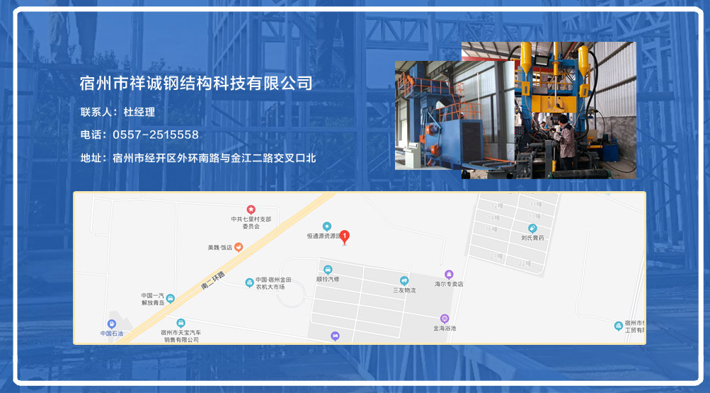 宿州市祥誠鋼結(jié)構(gòu)科技有限公司位于宿州市經(jīng)開區(qū)外環(huán)南路與金江二路交叉口北,公司是一家以建設(shè)產(chǎn)業(yè)化為目標(biāo),匯集大型鋼結(jié)構(gòu)廠房、彩鋼活動(dòng)房設(shè)計(jì)、制作、安裝施工一條龍服務(wù)的知名鋼結(jié)構(gòu)公司。公司現(xiàn)有固定資產(chǎn)1000余萬元、流動(dòng)資金近千萬元公司?,F(xiàn)有員工40人,大專以上學(xué)歷30人,其中高級(jí)工程師1人、工程師2人、會(huì)計(jì)師1名。各工種持證上崗率100%。高效化的年青團(tuán)隊(duì)為公司帶來了蓬勃發(fā)展的動(dòng)力,全體員工以務(wù)實(shí)的態(tài)度,拼搏的精神,創(chuàng)造著企業(yè)的每一天。 公司組織結(jié)構(gòu)嚴(yán)格按現(xiàn)代企業(yè)制度設(shè)計(jì),管理機(jī)構(gòu)設(shè)置合理,制度完善,各部門分工明確...